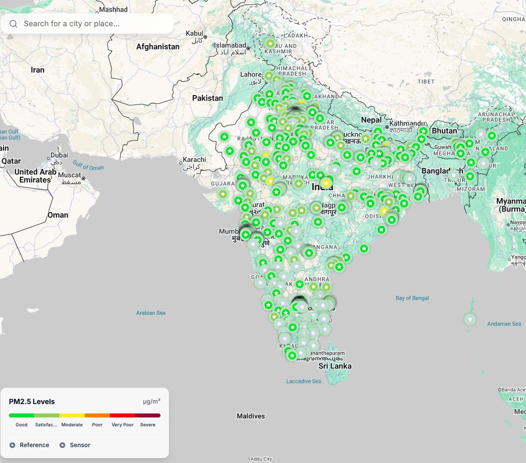 But air quality has been steadily degrading, and it’s not really part of the mainstream conversation. That needs to change. Right now, if you look at the site (https://oaq.notf.in/), everything looks green. But as we get closer to the end of the year, things will start looking much worse.